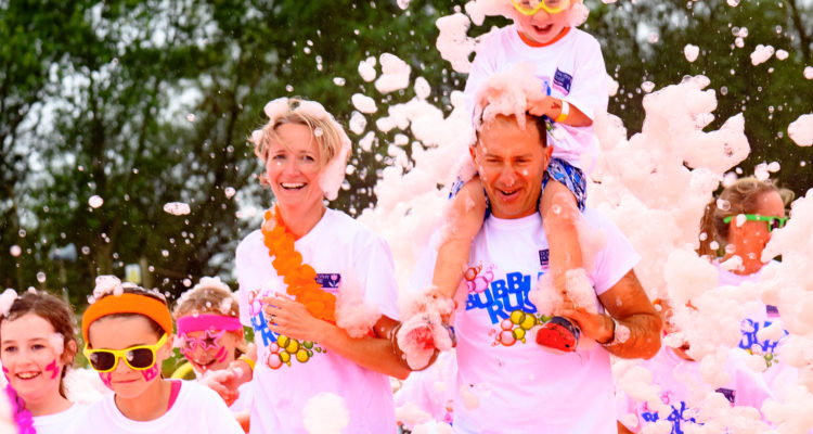The family friendly event sees participants take on the course around the park, complete with four bubble stations pumping out masses of multi-coloured foam.