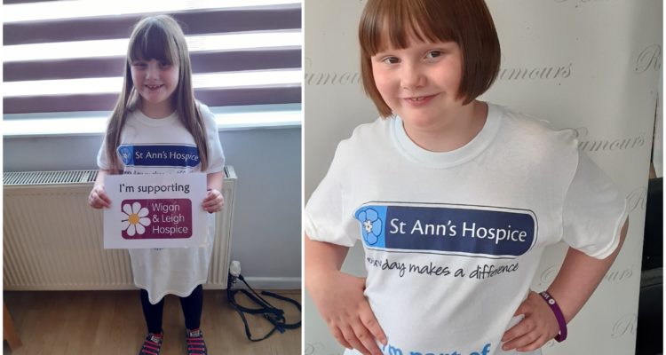 Young supporter Tilly Taylor from Wigan has chopped off more than ten inches of her hair to raise money for St Ann’s Hospice and Wigan and Leigh Hospice.